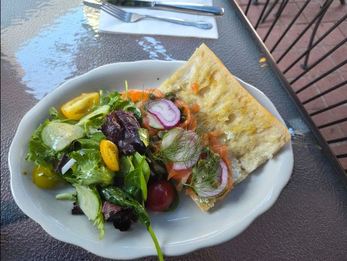 NEW EXPANDED MENU AT NISI GRILLED CHEESE IS BACK! A DELICIOUS SMOKED SALMON ON BAGUETE IS YUMMY. NEW MENU AVAILABLE UNTIL 4 P.M.