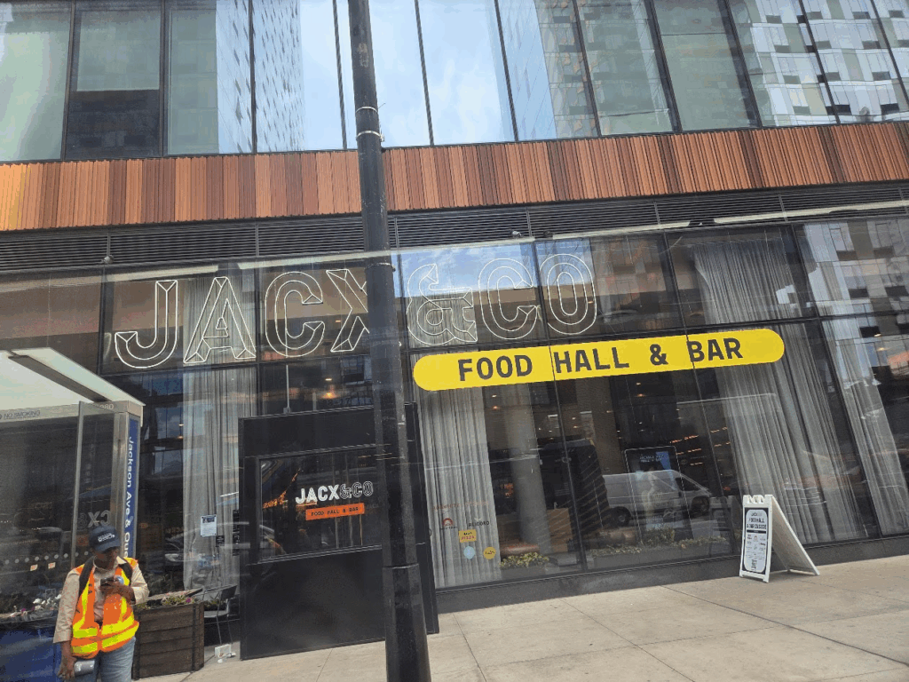 The 7 train is a few block walk from the N & R train at Queens PlazaOnce on Jackson Avenue, we were in the new skyscraper world of Long Island City. Jacx & Co, a giant food hall is the first dining spot on the avenue. Accross the street is al Murray’s Cheese, Serafina and a Chipolte. No longer an industrial area there are multiple dining spots may Asian.