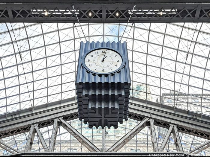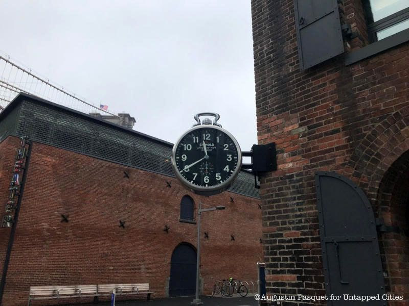 Although this is one of the newer clocks we’ve spotted around New York City, we appreciated the design and thought it was worth special mention. You can find the double sided, personalized time piece mounted on the outside of Shinola, a Detroit-based watch and accessories store located within the Empire Store’s waterfront shopping complex in DUMBO. Shinola also has another location in Tribeca.