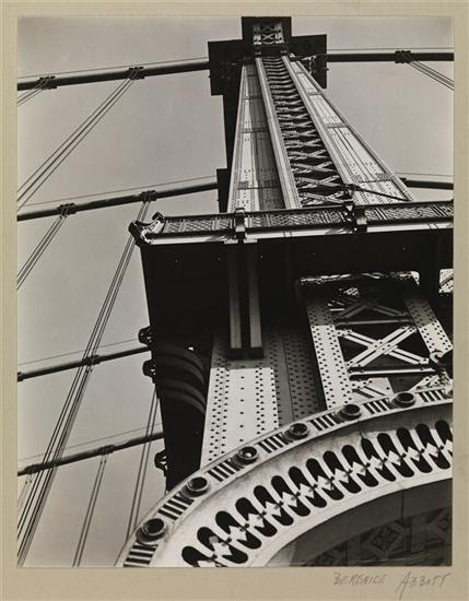 Photographer Berenice Abbott (1898-1991) Creator Berenice Abbott (1898-1991) Accession number 49.282.115 Unique identifier MNY20323 Description Looking straight up one of the Manhattan Bridge’s supporting piers, taken from the southern pedestrian walkway. Dated November 11, 1936 Object Type photograph Inscription / technical details “173” inscribed in red ink on mount verso, top left. | Abbott stamp on mount verso, bottom right. | Federal Art Project stamp on mount verso, center. | Title, location, date and Abbott number inscribe