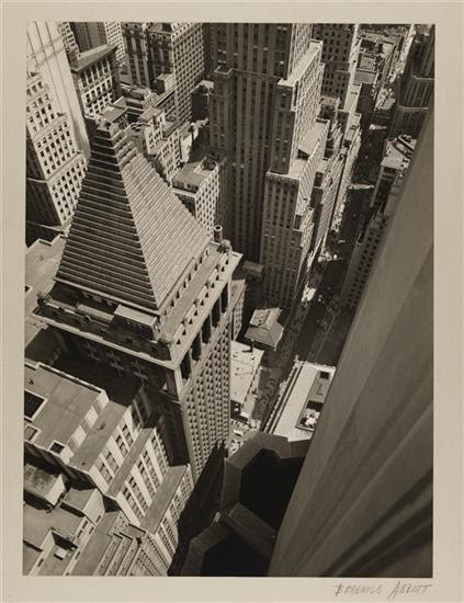 Photographer Berenice Abbott (1898-1991) Accession number 40.140.274 Unique identifier MNY24321 Description Wall Street with the East River beyond taken from the roof of One Wall Street. The pyramidal Bankers Trust Buiding is in the foreground. Dated May 4, 1938 Object Type photograph Inscription / technical details Federal Art Project stamp and title, location, date and Abbott number inscribed in ink, mount verso bottom right.