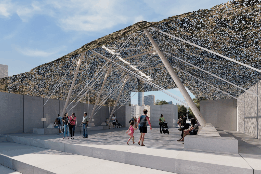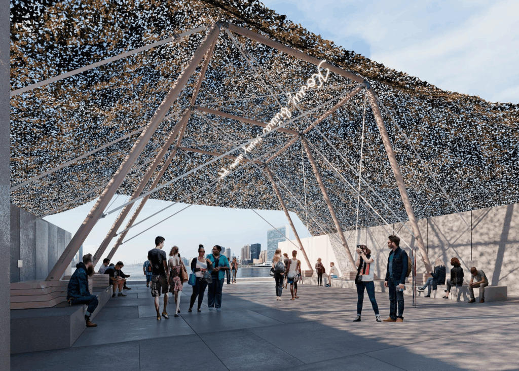 Camouflage by Ai Weiwei is commissioned by Four Freedoms Park Conservancy and the pavilion is designed with Camber Studio.