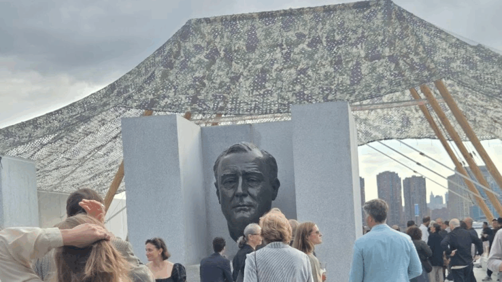 Like many New Yorkers, the acclaimed 68-year-old Chinese artist and activist, who now lives in Portugal, had never been to the park before touring it last November with Axel. On the triangular tip of the island, dramatically sited between Manhattan and Queens, Kahn designed two long alleys of Linden trees converging at a colossal bronze head of Roosevelt, poised within a granite niche. Carved on its backside is an excerpt from his Four Freedoms speech. This presides before a square open-air plaza, what Kahn called “the room”, defined on facing sides by a series of 6ft by 6ft by 12ft-high granite blocks spaced one inch apart.