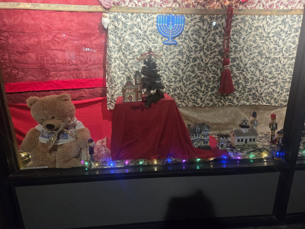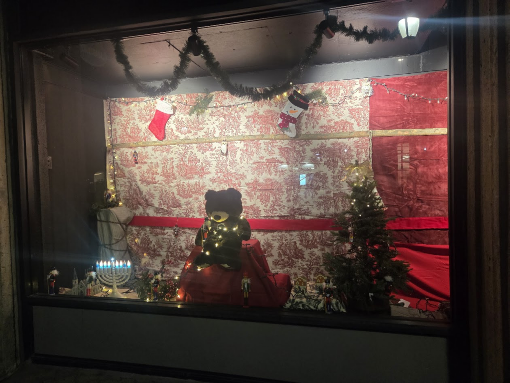 SHAYLA,ARIEL AND MAGGIE JOINED JUDY BERDY CELEBRATING OUR HOLIDAY WINDOWS. THE LADIES VOLUNTEERED TO DO A GRAND JOB DECORATING THE RIVERCROSS WINDOWS!
