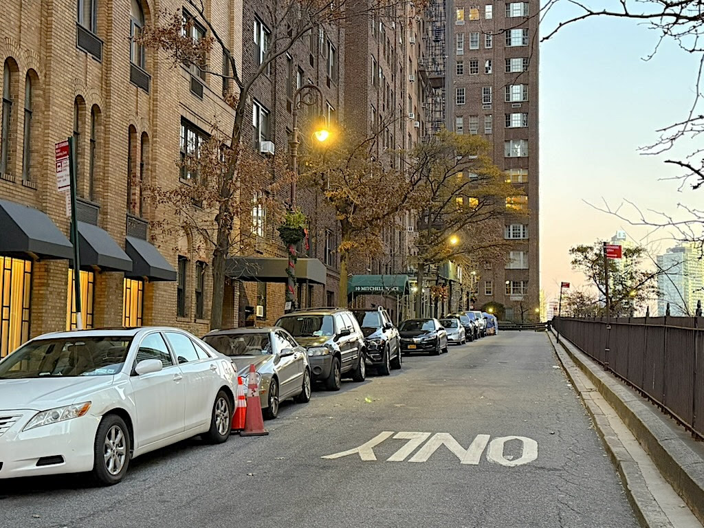 Quiet and with almost no foot traffic, Mitchell Place is surrounded by the modern city, from the United Nations to the south to the FDR Drive on the east to the buses and taxis jostling their way out of the traffic tunnel on First Avenue.