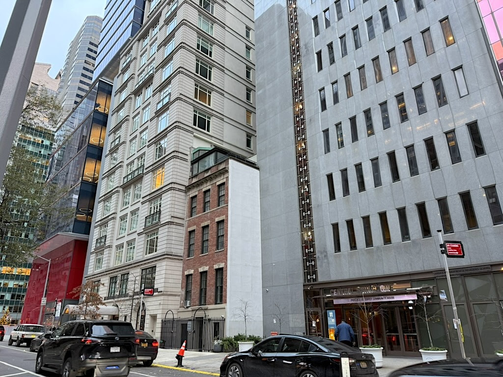 All around it are structures you expect to see in the contemporary office enclave west of Lexington Avenue known as East Midtown—imposing facades, lots of glass, buildings that try to make a statement.