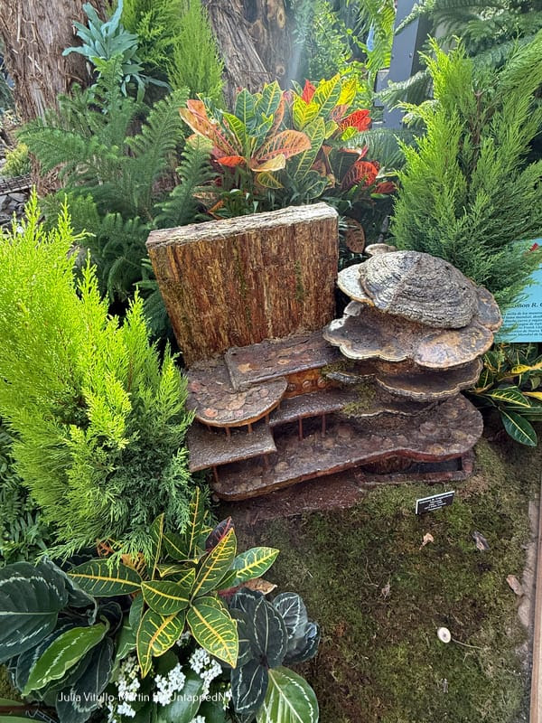 “Are those mushrooms, daddy?” asked the little boy to my left. Yes, indeed, the Guggenheim has been recreated with shelf fungus. “I think Frank Lloyd Wright would approve,” says Dolan, referring to the Guggenheim’s famously irascible architect. The Guggenheim is both a New York City landmark and a UNESCO World Heritage Site.