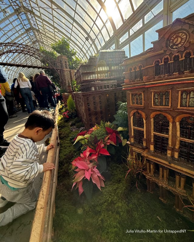 There’s nothing on the planet quite like the New York Botanical Garden’s Holiday Train Show, which replicates our city’s most treasured buildings, recreating them as botanical masterpieces. Limestone, marble, iron, wood, glass, and steel are replaced with evergreens, twigs, hollies, moss, pine cones, bark, and tree roots. Among and between the nearly 200 buildings, trains chug and glide on 1,200 feet of track, reminding us that New York was once a great train city. And now, in the Bronx, it is once again.