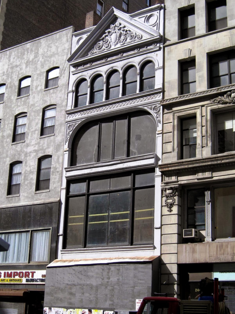 The building would become a favorite with exclusive decorating firms, art dealers and auction houses. On March 25, 1886 The Times reported that “Several windows and other pieces of stained glasswork, designed and manufactured by Mr. John La Farge, are on exhibition at No. 242 Fifth avenue. The fine effect of color in these pieces are evidence of progress in America in this branch of art.”