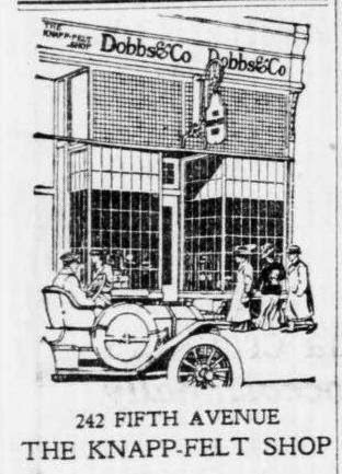 As automobiles began replacing carriages and the wealthy accepted the new trend, Dobbs & Co. was quick to cash in. On April 19, 1909 an advertisement in the New-York Tribune offered “Owners’ watertight cloth coats and chauffeurs’ complete outfits, together with many practical novelties in Automobile Apparel.” But it reminded customers of what had made it so successful: hats. “Derbies and Soft Hats $6, $4, in a variety of smart shapes in exquisite taste and of superb quality.” The $6 derby would cost about $150 today.