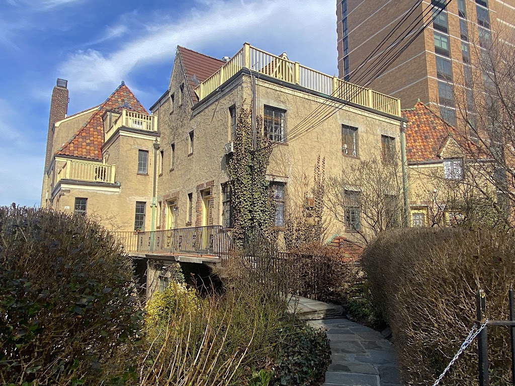 “Each wing is a carefully irregular composition of tiled roofs, protruding bays, balconies, and casement windows,” wrote David Bady on Lehman College’s Bronx Architecture website. “Together they house seventeen apartments, no two exactly alike.”