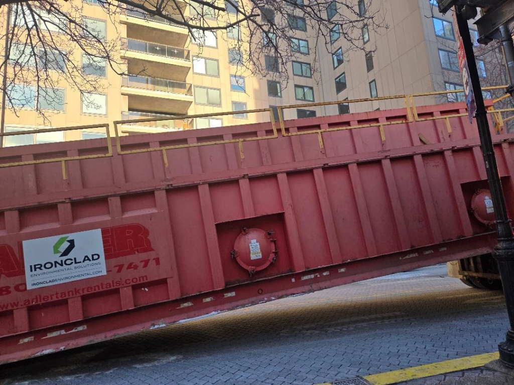 MONSTER DUMPSTER REMOVING DEBRIS FROM STEAM PLANT. WHAT HAPPENED TO BARGING? \WHAT HAPPENED TO COMMUNITY INVOLVMENT?