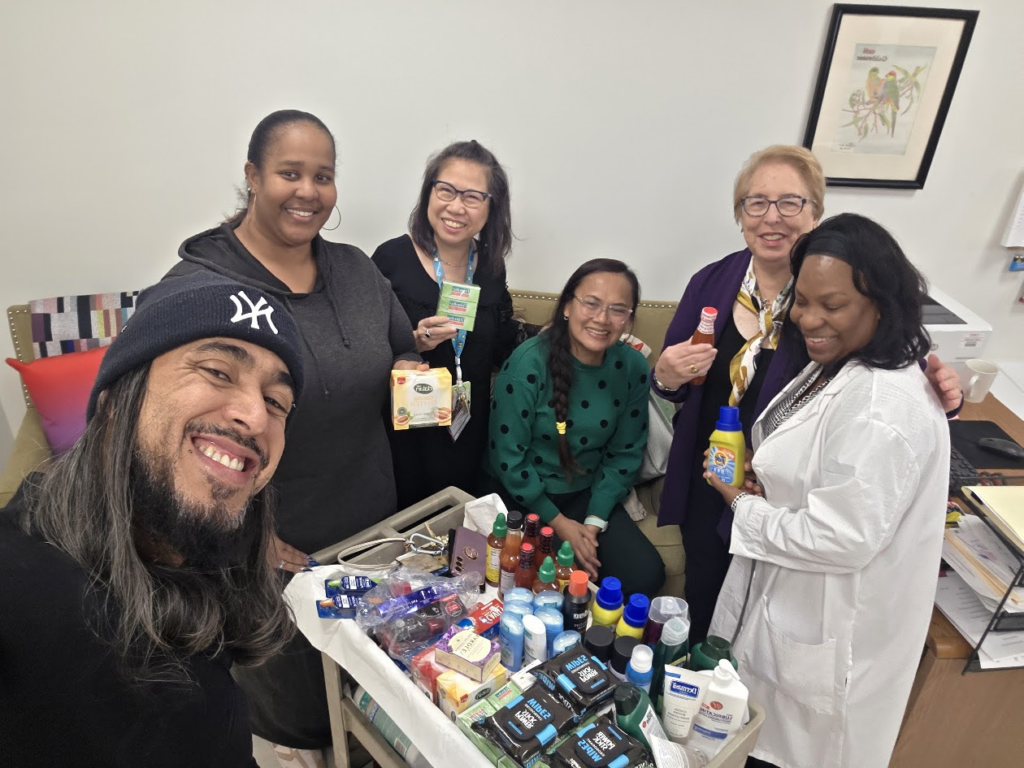 COLER THERAPEUTIC RECREATION STAFF GETTING READY TO DISTRIBUTE HOLIDAY GIFTS TO RESIDENTS.HEALTH AND BEAUTY GOODIES ARE DONATED BY GOOD SHEPHERD PARISH TO THE COLER AUXILIARY ANNUALLY