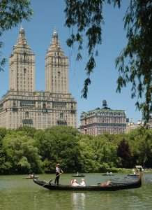 Illustrations, from above: A gondola ride in Central Park, with the iconic San Remo apartment building in the background; Venice, Italy, ca. 1735, by artist Canaletto; Peter Caesar Alberti marker in The Battery, Manhattan; Lorenzo Da Ponte portrait by Samuel Morse at the New York Yacht Club, ca. 1830; Designed by Jarvis Morgan Slade, the five-story Venetian-inspired building at 8 Thomas Street between Broadway and Church Street; Metropolitan Life Tower, postcard 1912; “Street Arabs in Mulberry Street, Little Italy” by Jacob Riis, 1889; Lewis Wickes Hine’s “Icarus, high up on Empire State,” 1931; and Jean Leon Gerome Ferris, “The Constitutional Convention,” 1787.