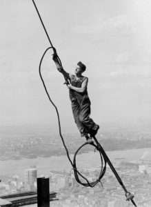 One remarkable shot shows a worker in mid-air connecting two cables which he gave the title “Icarus atop Empire State Building,” a reference to the Greek mythological character who flew too close to the sun and fell to his death.