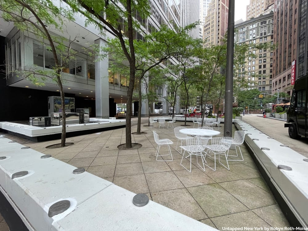Other quirky features included an old-fashioned candy store, artificial streams, and footbridges. According to The Municipal Arts Society, Mel said his goal for 77 Water was “to make the building disappear…The scale of any large office building is impossible for a human being to relate to. Our plaza is inviting, exciting, warm, and friendly. It makes people forget they’re at an office building.”