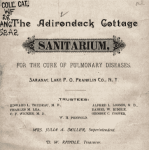 In 1882, Trudeau took notice of Hermann Brehmer’s ground-breaking methods in treating TB. Following the German example he founded the Adirondack Cottage Sanatorium in February 1885. The first patients were two sisters who had been factory workers in New York City. They were treated in a one-room cottage named “Little Red.”