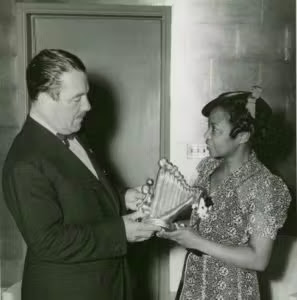 Savage presenting a replica of the piece to the President of the World’s Fair, Grover Whelan (Manuscripts and Archives Division, the New York Public Library)