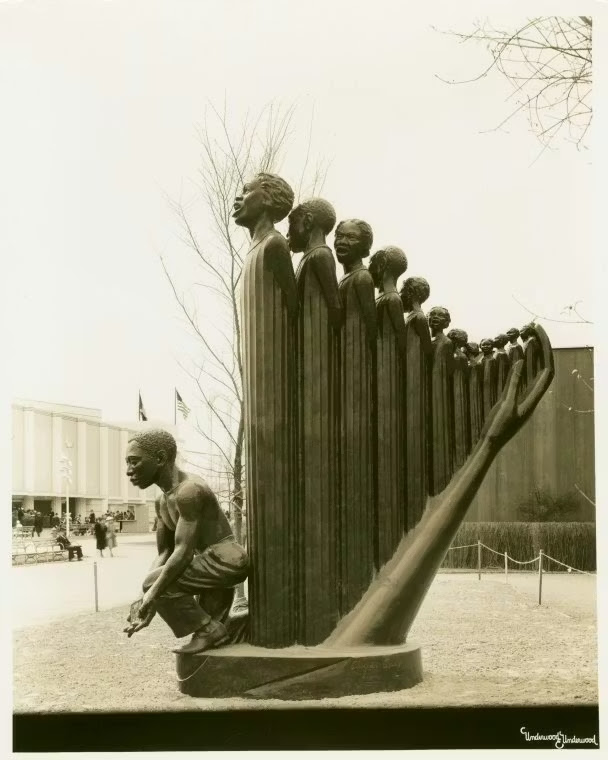 Small, metal replicas of the piece were sold as souvenirs, and images of it were reproduced on postcards. But what became of the work itself? Sadly, it was destroyed by a bulldozer after the Fair’s close in the fall of 1940. World’s Fairs were meant to be temporary and ephemeral, and it wasn’t shocking for structures or artworks to be demolished at the end.