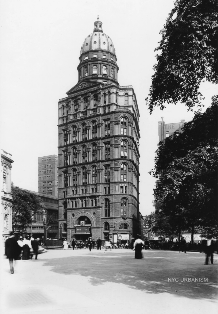 In 1955 the building was demolished to make way for an on-ramp to the Brooklyn Bridge. The iconic Tribune Building next door would also be demolished to make way for the Brutalist Pace University.