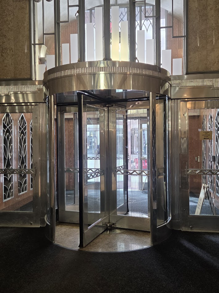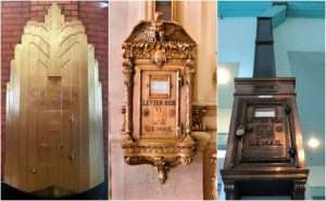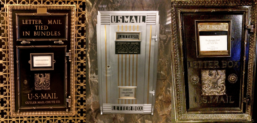 It’s likely that the mail chute, which quickly conveyed letters from the highest stories of ever-growing towers to their lobbies for pick-up, is emblazoned with the eagle insignia and name of the Cutler Mail Chute Company of Rochester, New York.