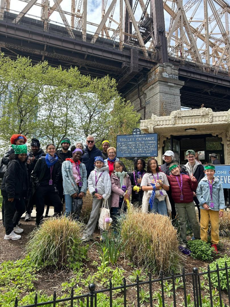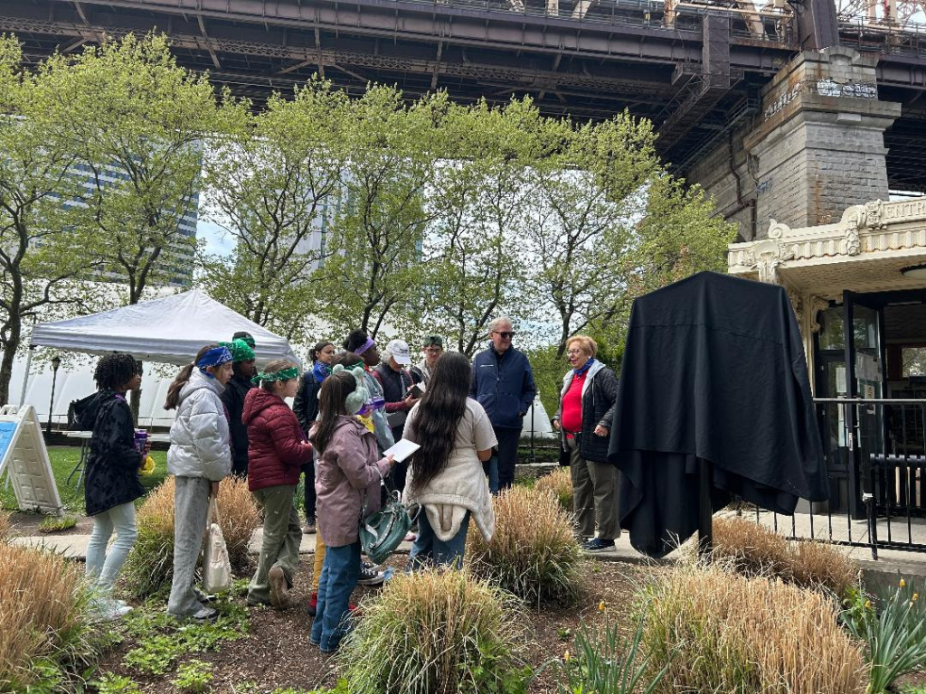 On Sunday morning members and staff of the RI Youth Center, RIOC and RIHS gathered to unveil the new historic marker at the Visitor Center. “This is such an exciting event, long time in the making. The RIHS worked with the Pomeroy Foundation and RIOC to bring this maker to the Island. The Pomeroy Foundation has donated five other historic makers on the Island celebrating landmark structures. This marker celebrates historic transportation sites. The visitor center was the entrance to the Trolley station on 59th street and Second Avenue, from 1907 to 1957.