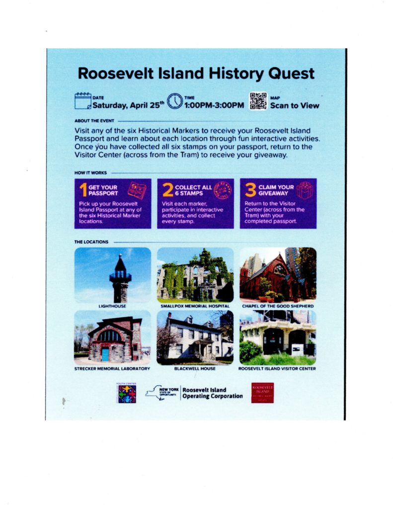 THIS PUBLICATION FUNDED BY DISCRETIONARY FUNDS FROM CITY COUNCIL MEMBER JULIE MENIN & ROOSEVELT ISLAND OPERATING CORPORATION PUBLIC PURPOSE FUNDS.