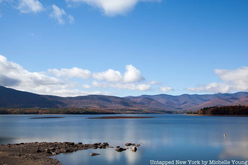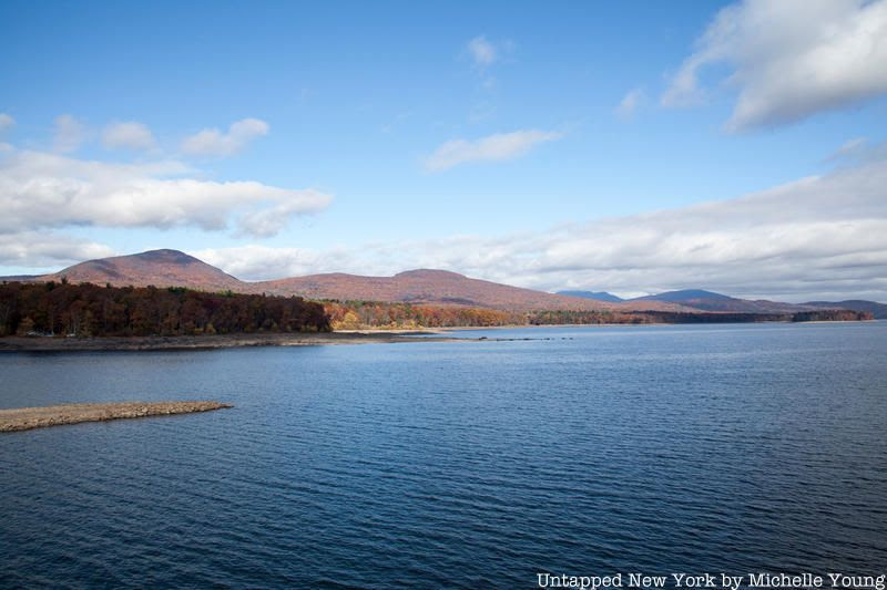 In sum, four towns were submerged while eight were relocated to build the Ashokan Reservoir. When the dam was completed, steam whistles were blown for an hour warning residents that the water was coming. Today, remnants of foundations, walls, and more can still be seen, particularly when water levels are lower–often in the fall. Although access to the reservoirs has been limited since 9/11, you can see some of those archeological finds from bridges. You can also hike and bike along a ridge of the reservoir.