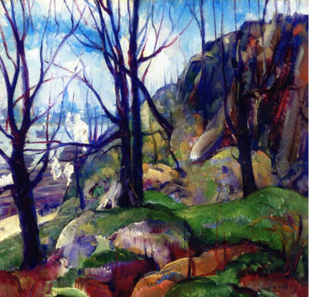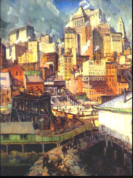 I love that the city skyline is barely in “Manhattan From Hoboken” (1915), another painting of the metropolis from the heights of New Jersey.