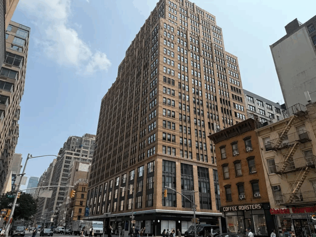 The 27-story brick building at 275 Seventh Avenue, known as the Lefcourt Clothing Center, was also landmarked on Tuesday. The Art Deco building, designed by architect Ely Jacques Kahn, has setbacks starting on the 18th floor, textured brickwork, decorative metal window enframents at the second through fourth stories, which originally held showrooms. In the 1930s, one floor of the building was leased by the International Ladies Garment Workers Union to be used as a health care facility for workers.