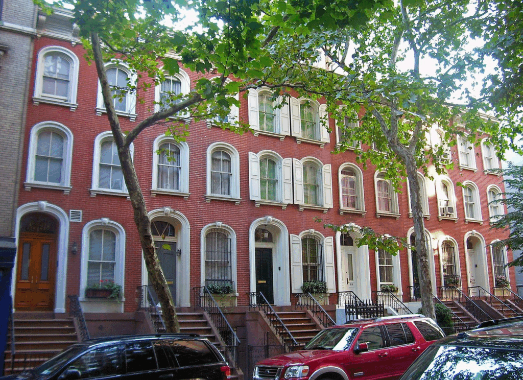 Construction was delayed somewhat by the difficulty of getting materials during the Civil War, but Brower had sold all the houses by the time construction was finished in 1865. Since then, number 206 on the west end of the row and 220–234 on the east have been demolished to build the neighboring, taller apartment buildings.[1]