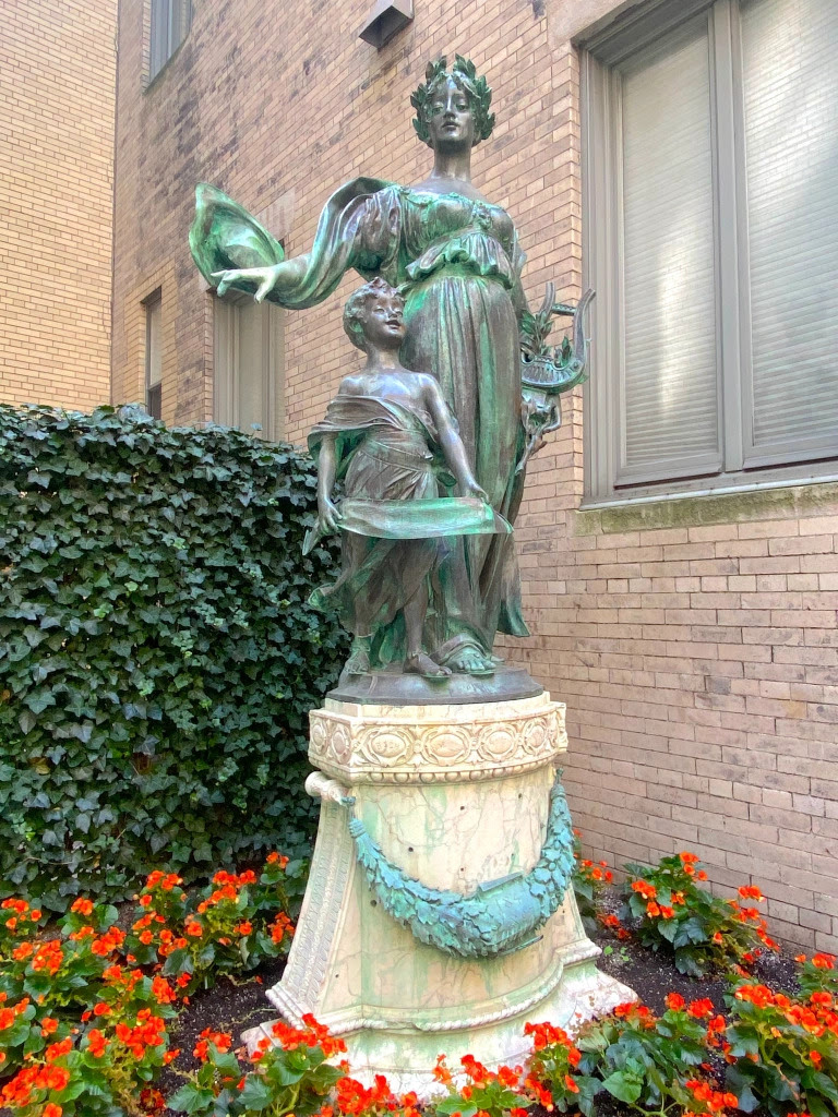 Two years after the Damen Verein formed, members commissioned sculptor Giuseppe Moretti to create the statue of Polyhymnia. It was presented as a gift for the clubhouse in 1897 to honor the Liederkranz Club’s 50th anniversary.