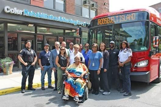 The Roosevelt Island Operating Corporation (RIOC) and NYC Health + Hospitals/Coler announce a new pilot program that will extend free Red Bus service on Roosevelt Island directly to the front entrance of the skilled nursing & rehabilitation center located at 900 Main Street, during morning and afternoon rush hours, beginning Monday, August 18. As part of the pilot, Coler will serve as the northernmost stop on the island from 6:00 a.m. to 10:00 a.m. and 3:00 p.m. to 8:00 p.m. on weekdays. The initiative aims to improve public transportation access for Coler residents, staff, and visitors.