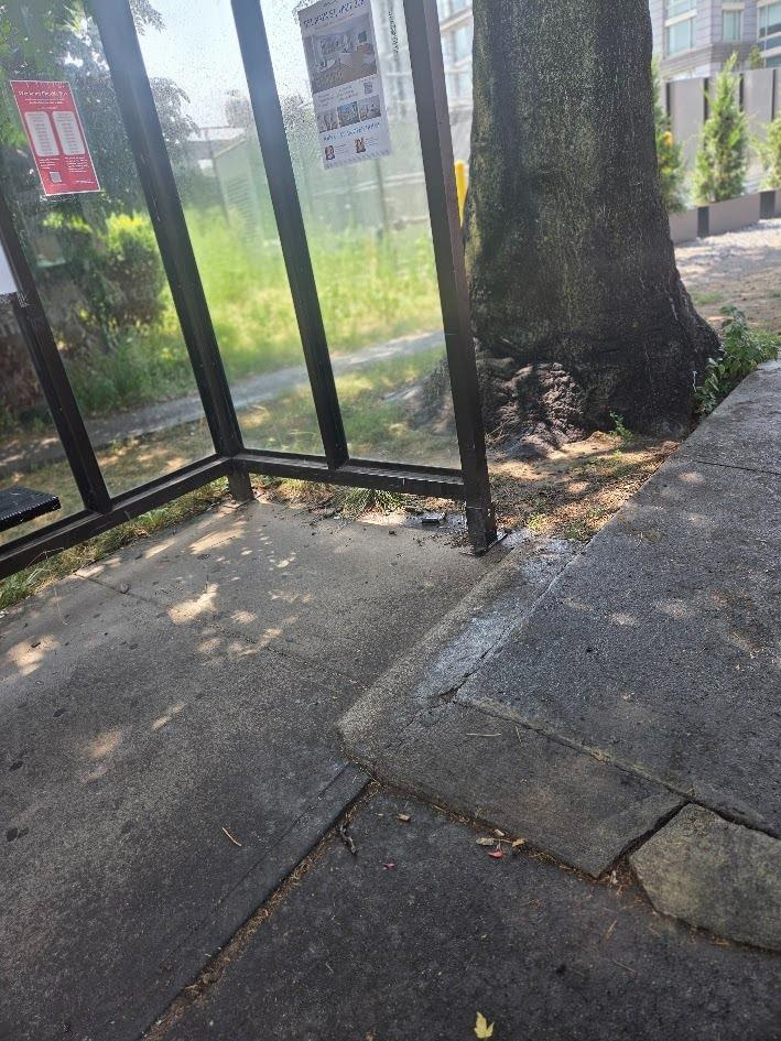 A part of the sidewalk at the Octagon bus stop has been cracking and was a tripping hazard. After reporting it to “Report a Problem” the area was repaired promptly. Now the tripping hazzard has been removed,