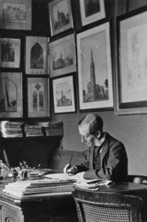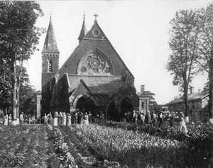 While the High Victorian Gothic Jefferson Market Courthouse, located in the Greenwich Village Historic District, is the best known of Wither's New York City works, he had many other New York commissions, among them the commercial building at 448 Broome Street in the SoHo-Cast Iron Historic District, the high altar and reredos in Trinity Church, the lich gate of the "Little Church Around the Corner" (Church of the Transfiguration), and the City Prison which replaced the original "Tombs." Withers was primarily considered an ecclesiastical architect and published the influential book Church Architecture in 1873. He was a strong advocate of the Gothic style for churches, and the Chapel of the Good Shepherd admirably illustrates his conceptions and ideas of what a church should be. In his book Withers recommends the combining of different building materials for picturesque effect. The exterior of the chapel, constructed in a number of materials is richly textured and subtly polychromatic. The warm red brick of the walls, laid in a modified version of Flemish bond, is enlivened by the random interspersing of gray brick. Smooth brownstone window and the door enframements, quoins and ornamental detail contrast effectively with both the brick and rough-faced gray stone of the basement story. This gray stone, used for many of the institutional buildings on the island, is the "granite" (actually gray gneiss) which was quarried on the island since the 18th century.